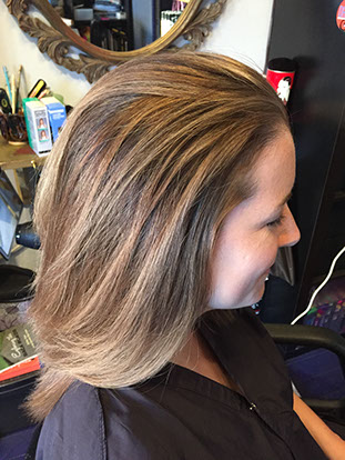 She specializes in highlights and color, including color correction, but also enjoys giving every client a haircut to suit his or her individual needs.